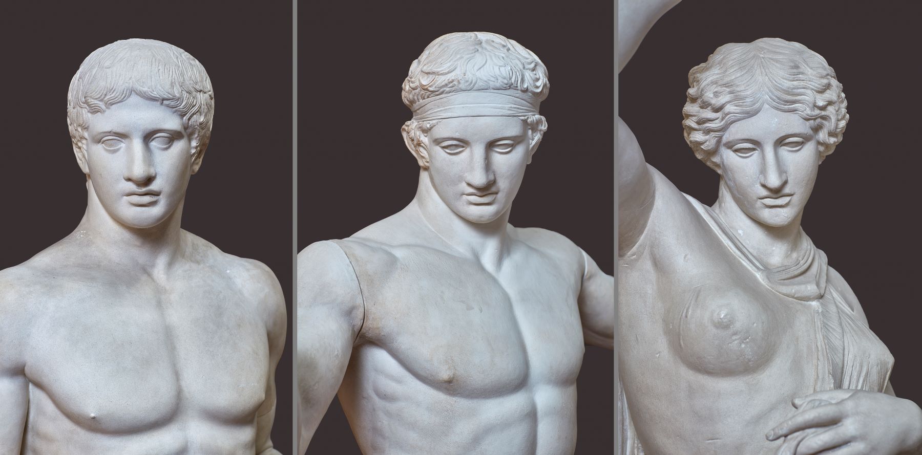 Von links nach rechts: Doryphoros; Diadoumenos; Amazone Sosikles. Für alle Figuren wurde ein Idealgesicht verwendet