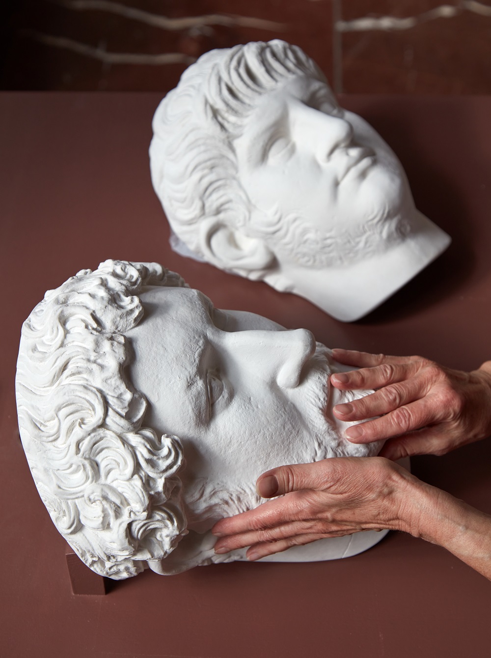 In den Museumsräumen sind mehrere neue Taststationen eingerichtet. Hier können einzelne Skulpturen im Originalformat oder Dank verkleinerter dreidimensionalen Drucken nach unseren Abgüssen aus unterschiedlichen Materialien wie Gips, Kunststoff oder Silikonerkundet werden. Im Gartensaal gibt eine umfangreichere Taststation zum römischen Kaiserporträt.
