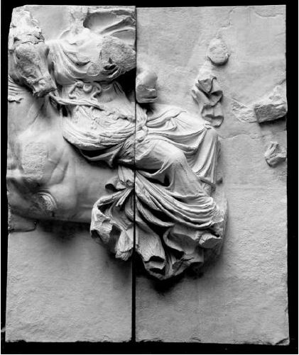 Wir besitzen Abgüsse nach drei Platten des 2,30 m hohen und 120 m langen Gigantomachiefrieses. Auf zweien ist die auf einem Pferd reitende Göttin Eos, auf der dritten eine weitere weibliche Figur (Nyx?), die ein schlangenumwundenes Gefäß nach ihrem Gegner schleudert, dargestellt.